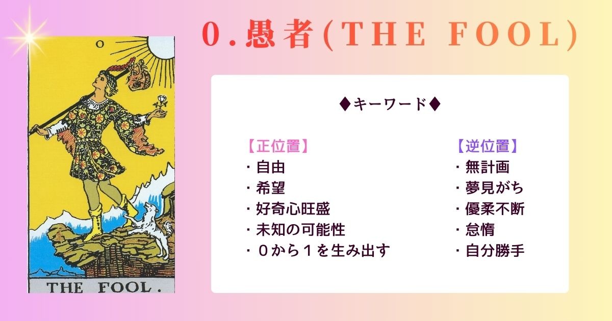 「自分はこれから何者にでもなれる」、そんな希望に満ち溢れた愚者のカード。